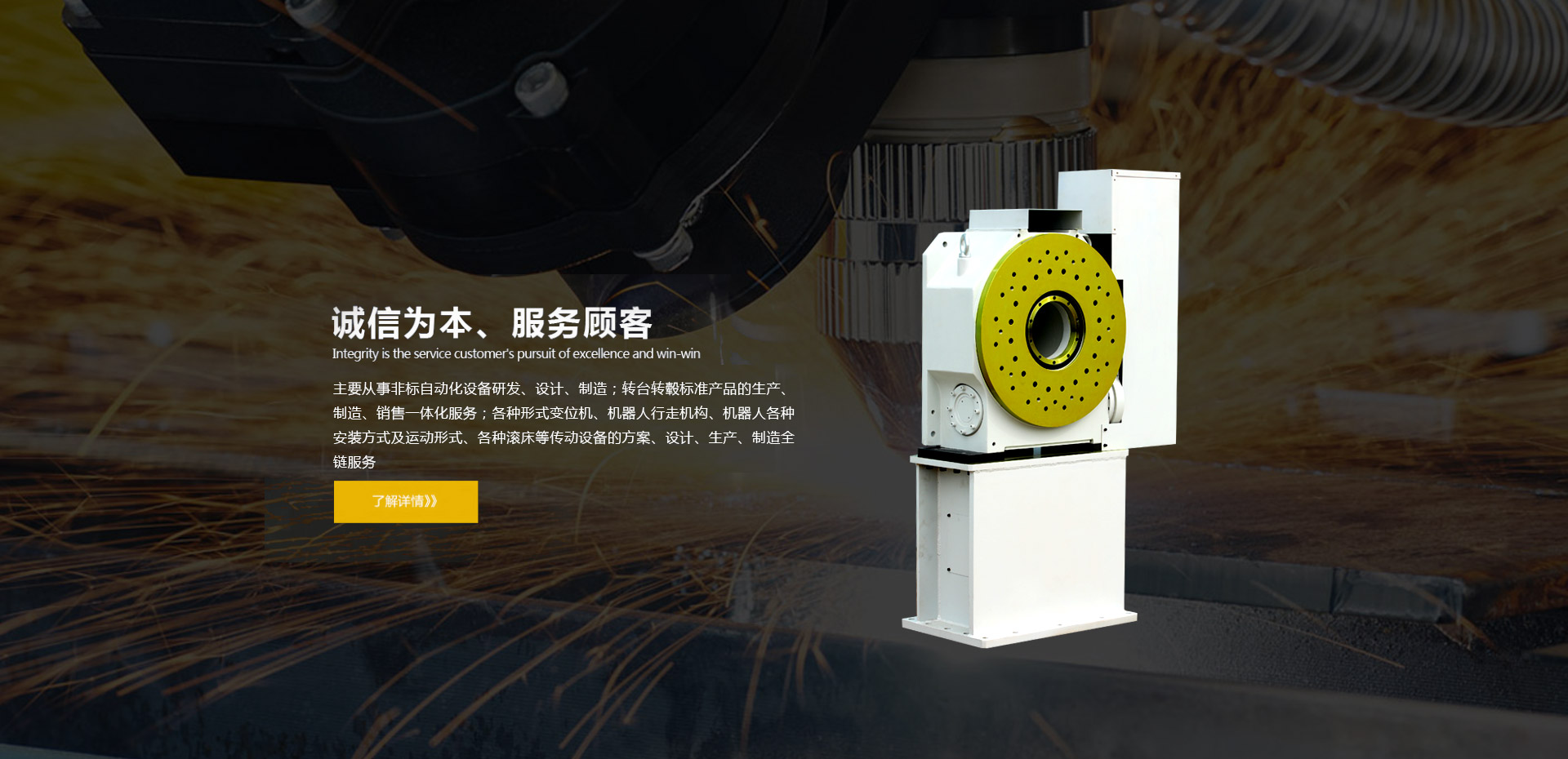 • 變位機(jī)是專用焊接輔助設(shè)備,由主機(jī)、減速機(jī)、主軸和機(jī)座組成,電機(jī)動(dòng)力通過減速機(jī)系統(tǒng)傳遞給主軸獲得低速大扭矩用于工件翻轉(zhuǎn)。實(shí)現(xiàn)高效、優(yōu)質(zhì)的焊接生產(chǎn)...